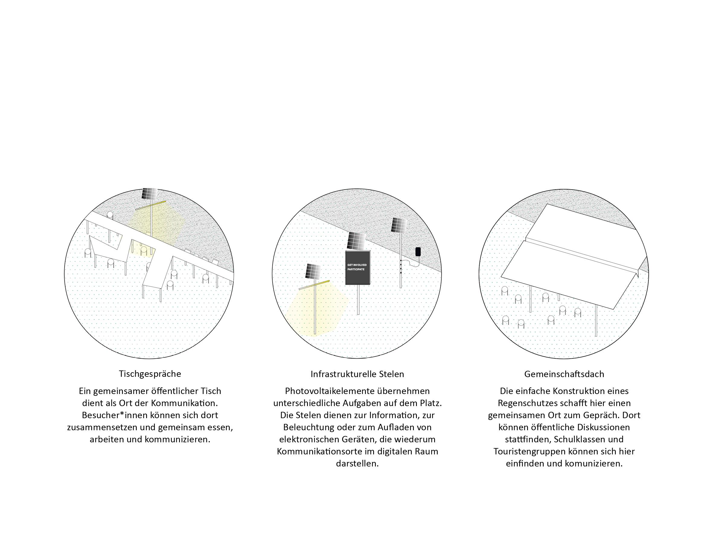Habermas Theorie des kommunikativen Handels beruht auf der Idee, dass gesellschaftliche Vernunft und Solidarität durch verständigungsorientierte Kommunikation entstehen. Eine demokratische Kultur basiert auf dialogischer Inklusion. Wir möchten mit unserem Vorschlag Kommunikationsorte schaffen, die zum Austausch, zum Diskurs und zur öffentlichen Diskussion einladen.