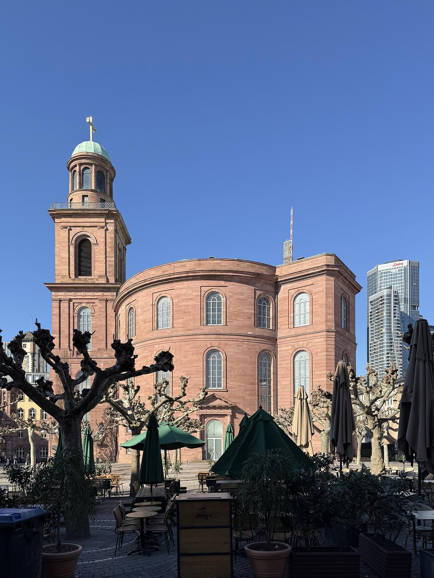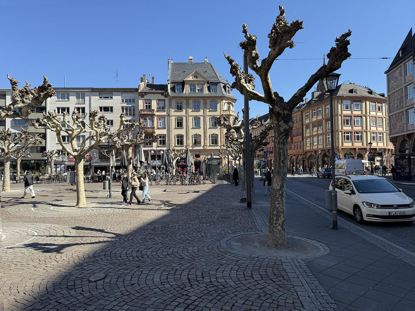 Eingebunden in die Stadtplätze von Rossmarkt und Römerberg, schafft es der Paulsplatz, Hitzeinseln durch die Entsiegelung und Bepflanzung entgegen zu wirken. Gleichzeitig bietet er bei Starkregen Retentionsflächen und reguliert darüber das Stadtklima.